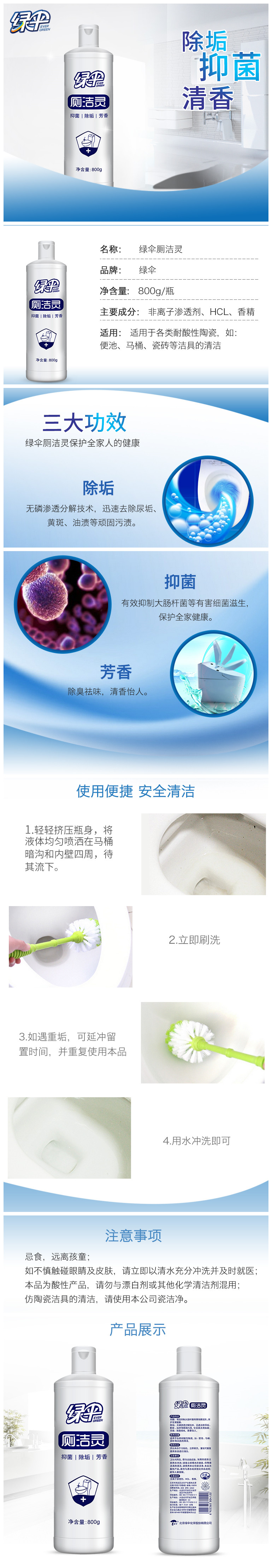 功 效:有效除垢,除尿垢、粪垢、油脂,不伤马桶,有效抵制大肠杆菌有害细菌滋生。