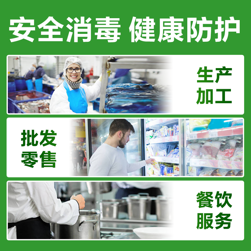 适用范围:食品包装消毒、集装箱消毒、转动车消毒、船只消毒、冷库地面消毒,冷库服装消毒、冷库设备消毒、快递盒消毒