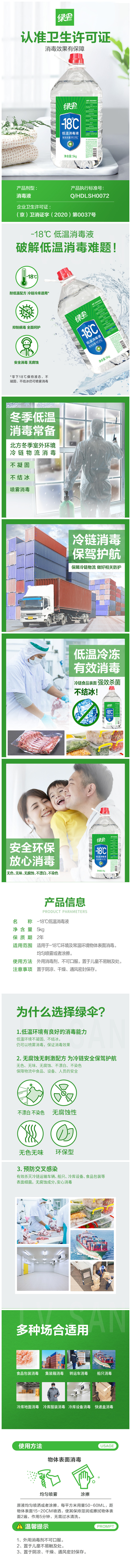 功 效:冬季低温消毒常备,不凝固、不结冰、喷雾消毒、适用于-18°C环境及常温物体表面消毒