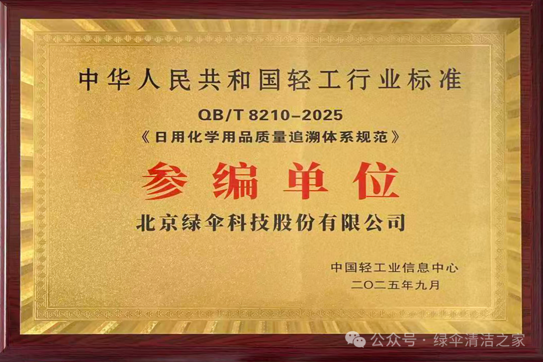 推动行业发展,绿伞科技参编起草《日用化学用品质量追溯体系规范